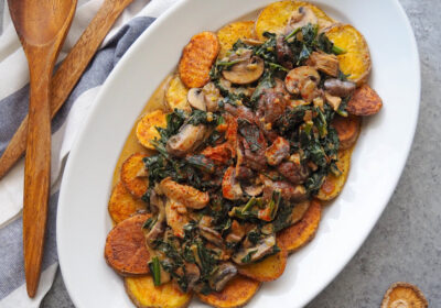 Panqueques de calabaza con crema de arce y anacardo. Leer el artículo